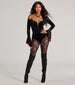 Vamp it up this Halloween in a bodysuit that features a plunging off-the-shoulder V-neckline. fitted long bell sleeves with contrasting red satin woven lining. and cheeky bottom coverage. Complete your vampire costume with floral lace tights and thigh-high boots.