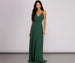 Introducing our Vaughan Chiffon Gown! She is a beautiful floor length hunter green dress. her relaxed bodice features a v-neckline. spaghetti straps. and an overlapped cup. Spaghetti straps lead to a self tie closure at the top. a zipper closure below. and a ruffled keyhole cut out. The skirt of the gown meets high waist and has an overlapping effect. the skirt is floor length and flowy. She includes a full body smooth inner lining from cup to floor. She is composed of a chiffon like material that offers a breezy flow.