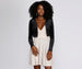 Perfect to add to any formal dress. this bolero features a short tailored hem. long sleeves and a collarless design. This bolero cover up is composed of a velvet material that offers a form fit.
