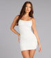 Playful yet glam. the Vienna rhinestone pearl mesh mini dazzles with a draped cowl neckline. curve-skimming bodycon fit. and strappy tie-back detail. Perfectly flirty and sparkling. it's a look made for unforgettable nights out.