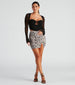 Strut like the vivacious vixen you are in this snake print mini skirt featuring a curve-flaunting design. high-rise waist. and front slit accent on stretchy jersey knit fabric. Complete the look in a long sleeve crop top and mules for dinner and drinks!