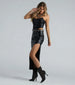 Walk the walk of chic in this faux leather midi skirt downtown to the coffee shop or restaurant! The midi skirt features a flattering high-rise waist and bodycon silhouette with a bold side slit cutout for a show of leg. Complete the look with a sleek moto jacket and booties.