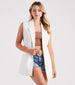 Get into a weekend state of mind with this chic long cotton vest. It features a sleeveless bodice with a lapel collar. a button-down front. a thin tie-front detail. front pockets. and a long-line hem with a fitted silhouette. Layer this lightweight vest over a mini dress with espadrille sandals.