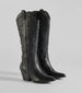 Giddy up and get struttin' in these faux leather cowboy boots for your fashion standoff at high noon! They feature an on-trend pointed-toe. a stacked block heel. inner zipper closure. and an under-the-knee shaft length with western-inspired stitching. Complete the look in a cowboy hat for a concert or bar!