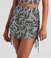 Why blend in when you can stand out! Stay ahead of the trend in this zebra print mini skirt featuring a high-rise waist. form-fitting silhouette. and dual side ties along the mini hem. Complete the look in the matching top.