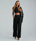 Work it down the hallway in these pinstripe trouser pants to show everyone who's the fashion boss of the office! They feature a flattering high-rise waist. hidden side pockets for keeping your hands warm or cell phone. and a wide-leg silhouette. The pinstripe knit fabric has plenty of stretch. Complete the look in a basic tee. heels. and a chic blazer.