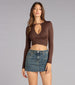 Sleek. sculpted. and subtly bold. This long sleeve crop top features a sultry front cutout and wrap-style bodice that flatters every curve—perfect for everyday styling or dressed-up moments.