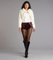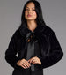 This cropped faux fur jacket ties at the neck with a satin ribbon for the perfect mix of cozy and glam. The ultimate layering piece for celebrations. cold nights out. or when you want to look like a gift.