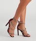 Rhinestone embellished straps wrap around your feet on these stiletto heels perfect for a semi-formal or dressy event! They feature a square toe. closed ankle. and back zipper closure. and are made of faux suede and leather material. Complete the look with a glam clutch.