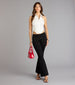 These high-rise ponte pants hug you just right and flare out for a sleek. confident finish with sandals and a sassy collared top.