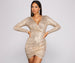 Yes babe. it's your time to shine in this gorgeous sequin mini dress! It features long fitted sleeves. a wrap front V neckline. a high waist seam. and short. curve-hugging fit with a tulip hem. Pair this dress with a sleek envelope clutch and you'll be ready to ring in the new year!