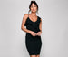Make a stylish statement with a formal bodycon dress that brings the elegance! The dress features a sleeveless V-neckline with a spaghetti strap. a cap sleeve on the left shoulder. a ruffled bodice. and a midi-length silhouette. The dress is composed of a crepe fabric that offers a form-hugging fit with a moderate stretch. Complete look with rhinestone heels.