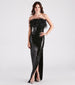 Flaunt your diva allure in the Zuri formal sequin dress to make a grand debut at school dances. sweet sixteens. or banquets! She features a strapless neckline with a statement feather bust. non-slip grip lining. and a flattering mermaid silhouette. high side slit. and floor-length hem. The formal dress is composed of a light-catching sequin embellished fabric with a stretchy knit lining. Complete the look in this long sequin dress with platform stiletto heels.